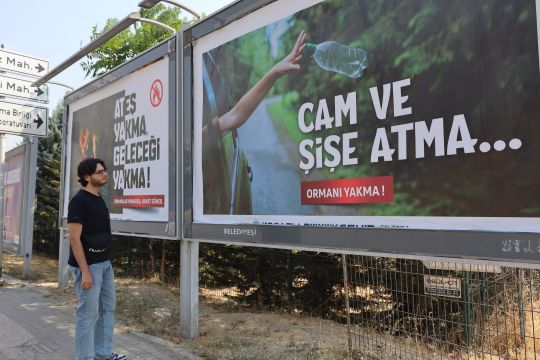 Kocaeli Büyükşehir Belediyesi’nin sosyal medya hesaplarından yayımlanan ve büyük beğeni alan çevre temalı görseller, açık hava mecralarında da yer alıyor. Kocaeli'nin farklı noktalarında konumlandırılan billboardlar, her biri ayrı çevre mesajı taşıyan görsellerle donatıldı. Bu görseller; kontrolsüz ateşlerin yol açabileceği felaketlere, cam ve şişe atıklarının orman yangınlarına neden olma riskine dikkat çekiyor.