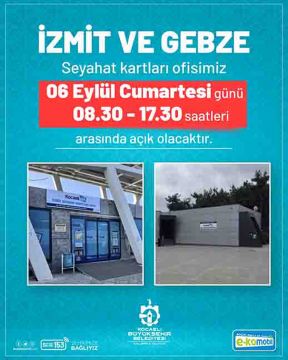Ulaşım Dairesi Başkanlığı, okulların açılması sebebiyle Kocaeli Kart başvurularında yaşanan yoğunluğun önüne geçmek amacıyla yeni düzenlemeler yaptı. Vatandaşların işlemlerini hızlı, kolay ve konforlu olarak gerçekleştirebilmesi amacıyla İzmit ve Gebze Seyahat Kart Ofisleri 6 Eylül cumartesi günü mevcut mesai saatleri (08.30-17.30) içerisinde hizmet verecek.