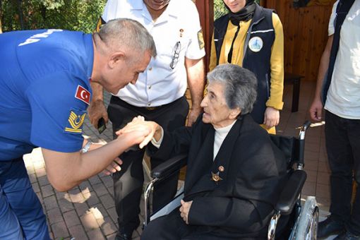 Zehra annenin ziyaretine teşekkür eden İlçe Jandarma Komutanı Kadir Kaya, “Milletimiz her zaman etle tırnak gibidir. Askerimiz, polisimiz, milletimizin bu birlikteliğini kimse bozamaz, buna izin verilmeyecektir. Askerimizle yüz yüze gelemeyen hainler böyle tuzaklar kuruyorlar. Türk milletinin bir kez daha ciğer yandı. Ülkemiz genelinde bu hainlere karşı sonuna kadar mücadele edilmektedir. Askerlerimizin kanı yerde kalmayacak” ifadelerini kullandı. Ziyaret sonunda İlçe Komutanı Kaya, şanlı Türk Bayrağı rozetini kendi elleriyle Zehra annenin yakasına taktı. 98 yaşındaki Zehra annede her zaman askerimiz için dua ettiğini, her daim yanlarında olduğunu söyledi.