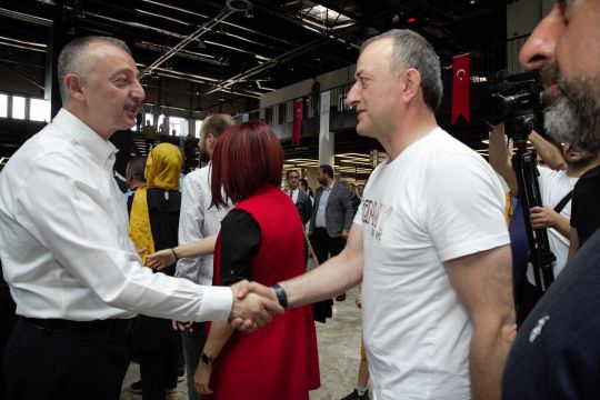 Kocaeli Büyükşehir Belediye Başkanı Doç. Dr. Tahir Büyükakın, Büyükşehir çalışanları ile bayramlaştı. Bayram öncesi yapılan zam ile büyük mutluluk yaşayan personel, Kongre Merkezinde düzenlenen Büyükşehir ailesinin bayramlaşma programına yoğun ilgi gösterdi. Başkan Büyükakın’ı alkışlar ve tezahüratlarla karşılayan personel ‘’Büyük başkan tezahüratları’’ ile mutluluğunu dile getirdi. Büyükşehir çalışanlarının yaktığı meşaleler, çalan davul zurnalar eşliğinde Kongre Merkezine giren ve bayramlaşma programında personele seslenen Başkan Büyükakın, “Sizlerle Kurban Bayramı için burada buluşmak ve bir arada olmak çok mutluluk verici. Bayram öncesi yaptığımız %30’luk zam ananızın ak sütü gibi hepinize helal olsun. Elimizden geldiğince yanınızda olmaya devam edeceğiz” dedi.