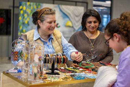 Etkinliğe katılan kadınların programdan rahatça faydalanabilmesi için çocuklara yönelik güvenli çocuk alanı oluşturuldu. Böylece anneler programı takip ederken çocuklar da güvenli bir ortamda vakit geçirme imkânı buldu.